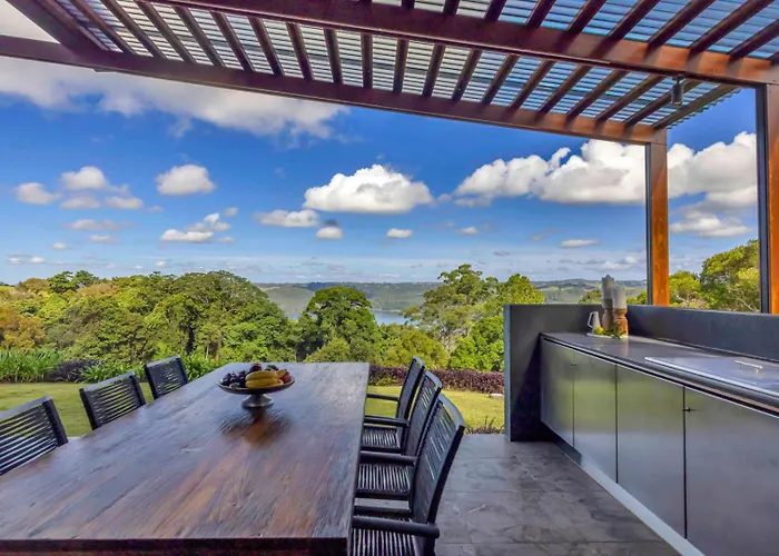 Gasten kunnen hun eigen maaltijden bereiden in een ingerichte keuken van deze villa. Flame Hill Vineyard, waar een breed scala aan maaltijden wordt geserveerd, ligt binnen 8 minuten te voet ervan.